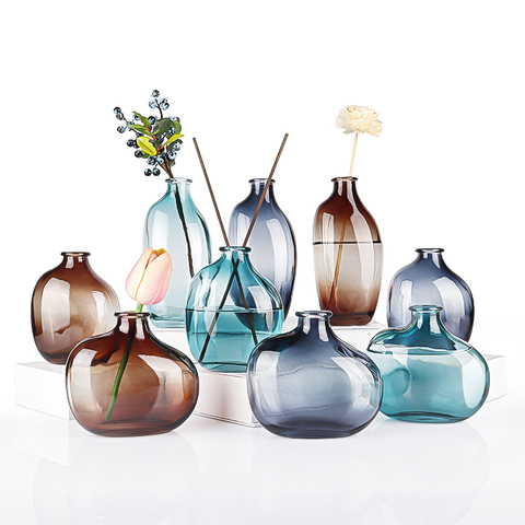 Custom Logo Gradient Color Unique Shaped Glass Vase Flower Vase for Home Decoration