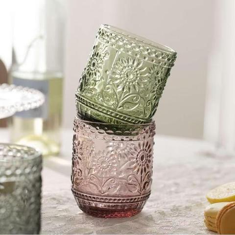 แก้วใสขนาด360มล. ลายนูนสีสันสดใสสีชมพูฟ้าเขียวเทาส่งตรงจากโรงงาน